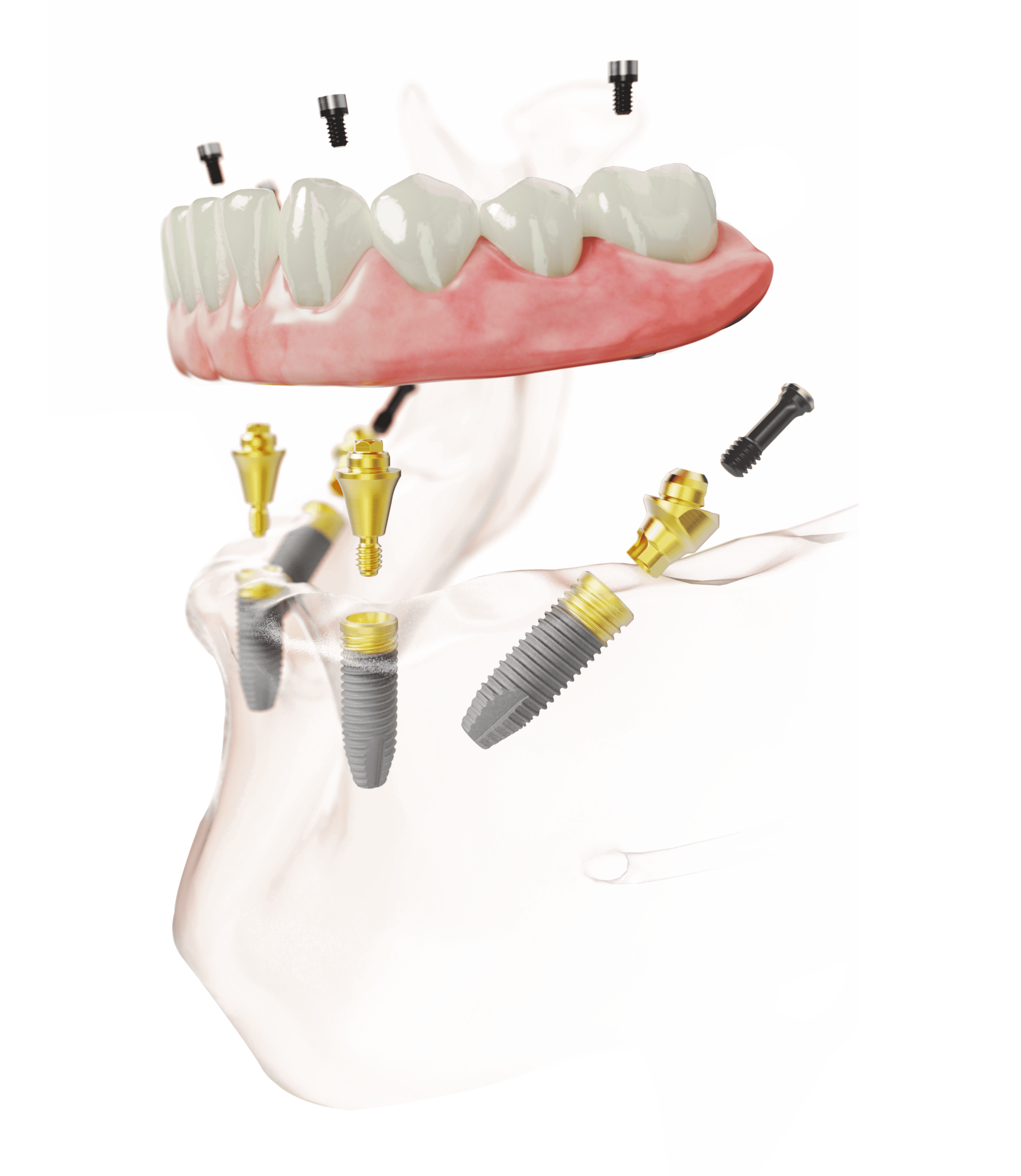 Es muss genügend Knochenvolumen vorhanden sein, um die Implantate fest und sicher verankern zu können. Gegebenenfalls ist ein vorheriger Knochenaufbau notwendig. Beim All-on-4®-Verfahren ist in den meisten Fällen selbst bei starkem Knochenrückgang kein Knochenaufbau notwendig und es kann sofort implantiert werden.