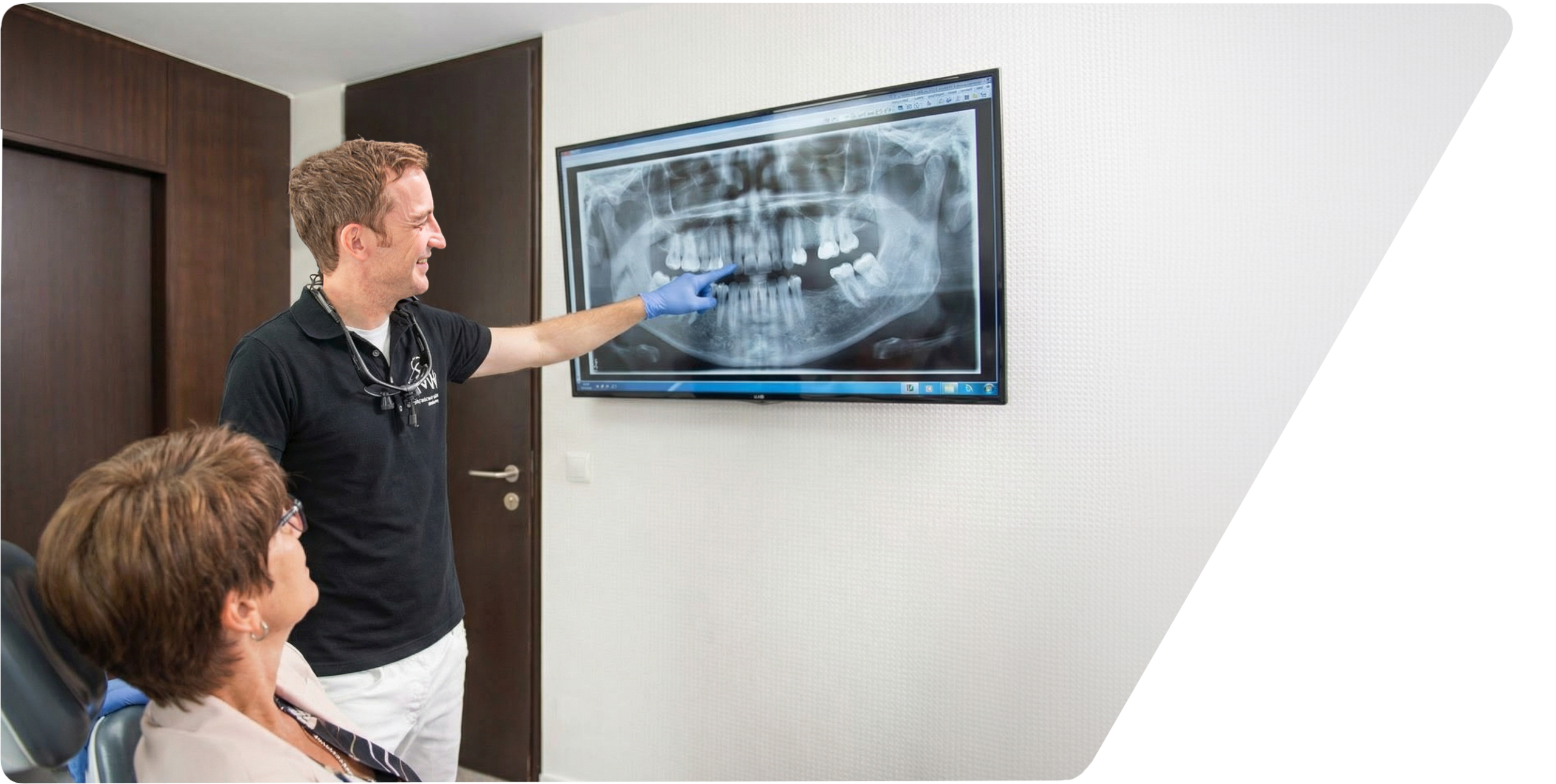 Ihr Ersttermin beginnt mit einer ausführlichen Untersuchung Ihrer Kiefersituation. Mithilfe einer hochauflösenden 3D-Röntgenaufnahme (DVT) erhalte ich ein präzises Bild Ihrer Knochenstruktur. Damit kann exakt festgestellt werden, ob Ihr Knochenvolumen für eine Implantation ausreicht oder ob gegebenenfalls Maßnahmen zur Knochenregeneration erforderlich sind.