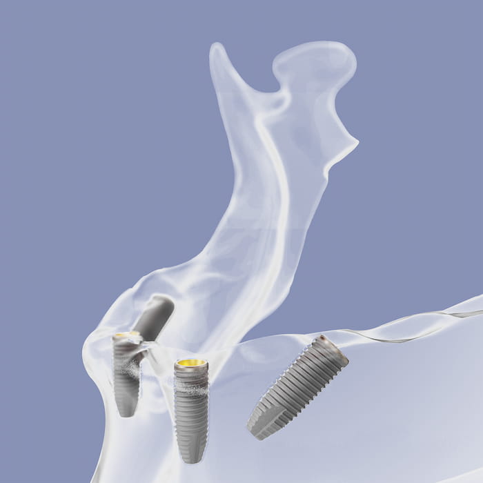 Grundsätzlich gilt: Je mehr Implantate ohne Unterschreitung des Mindestabstands von etwa 3 mm eingesetzt werden können, desto stabiler ist der Zahnersatz.