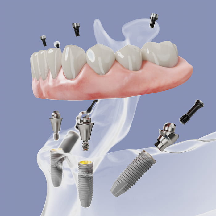 All-on-4® ist ein Implantatverfahren, bei dem zahnlose Patienten (oder Patienten mit nicht erhaltungswürdigen Zähnen) in nur 24 Stunden mit festsitzendem Zahnersatz auf nur 4 Implantaten versorgt werden können. Die neuen Zähne sind sofort funktional und belastbar und sowohl von der Optik als auch vom Mundgefühl mit echten Zähnen vergleichbar. Nach nur einem OP-Tag endlich wieder unbeschwert essen, lachen und sprechen zu können, ist ein Zugewinn an Lebensqualität, der sich kaum in Worte fassen lässt.