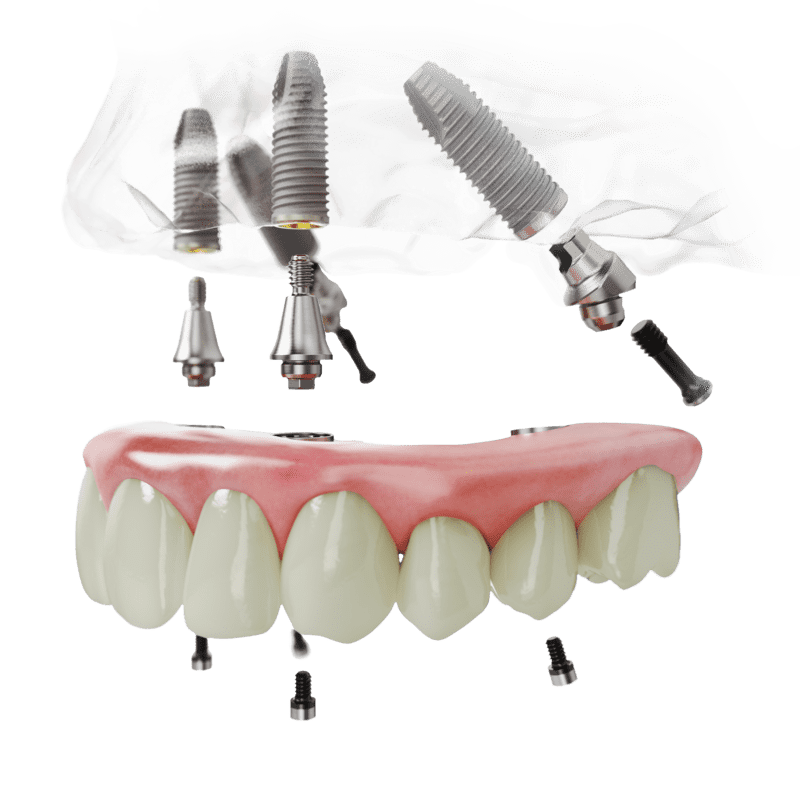 Das All-on-4®-Behandlungskonzept eignet sich für Patienten, deren Ober- oder Unterkiefer komplett oder nahezu zahnlos ist. Sind noch einige wenige Zähne vorhanden, die locker, stark kariös oder beschädigt und somit nicht mehr erhaltungswürdig sind, können diese am Tag der OP gezogen werden.