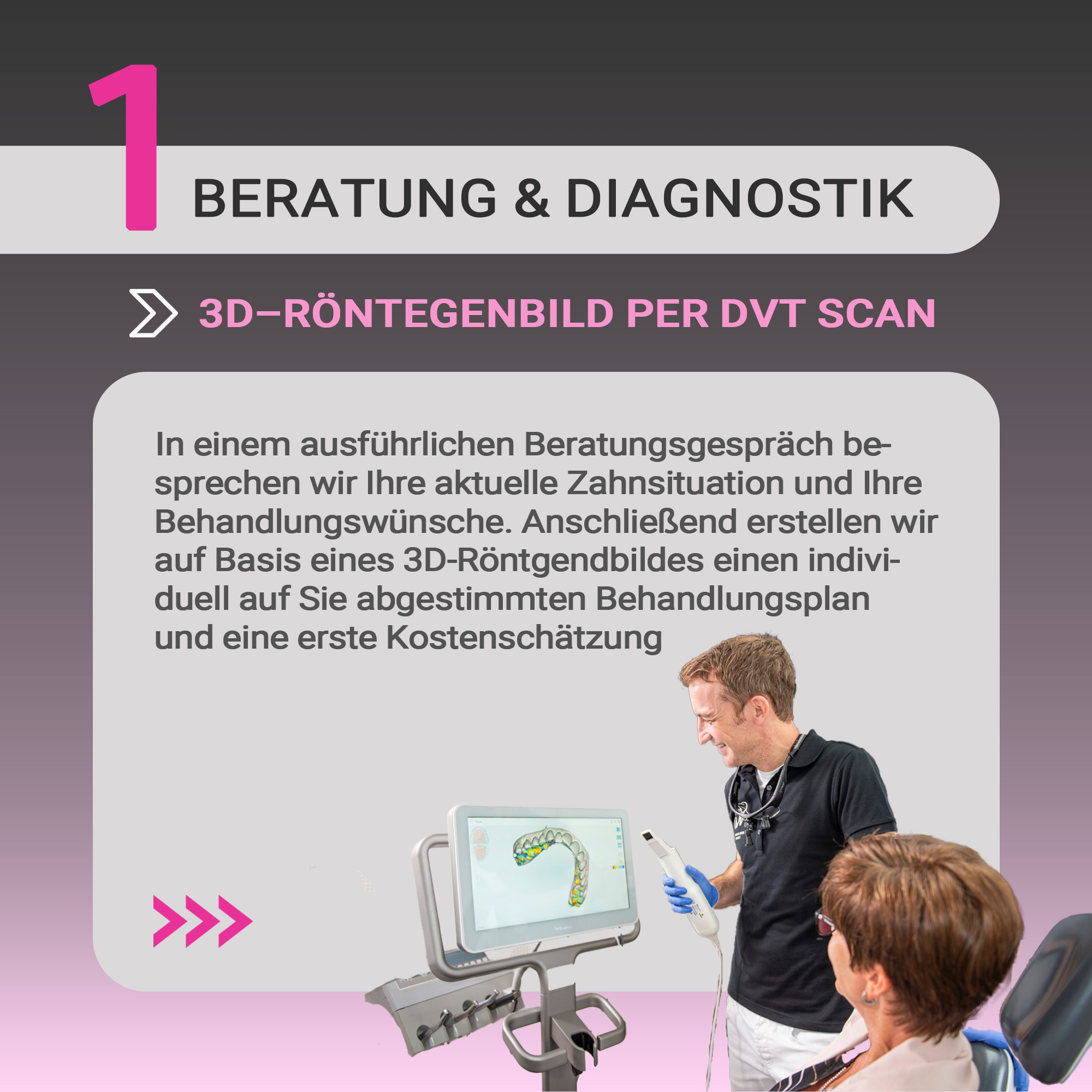 Nachdem wir eine umfassende 3D-Diagnostik durchgeführt und Ihre Behandlungswünsche besprochen haben, erstellen wir einen transparenten und detaillierten Kostenplan. Gerne besprechen wir diesen mit Ihnen und klären etwaige Fragen, bevor Sie sich für eine Behandlung bei uns entscheiden.